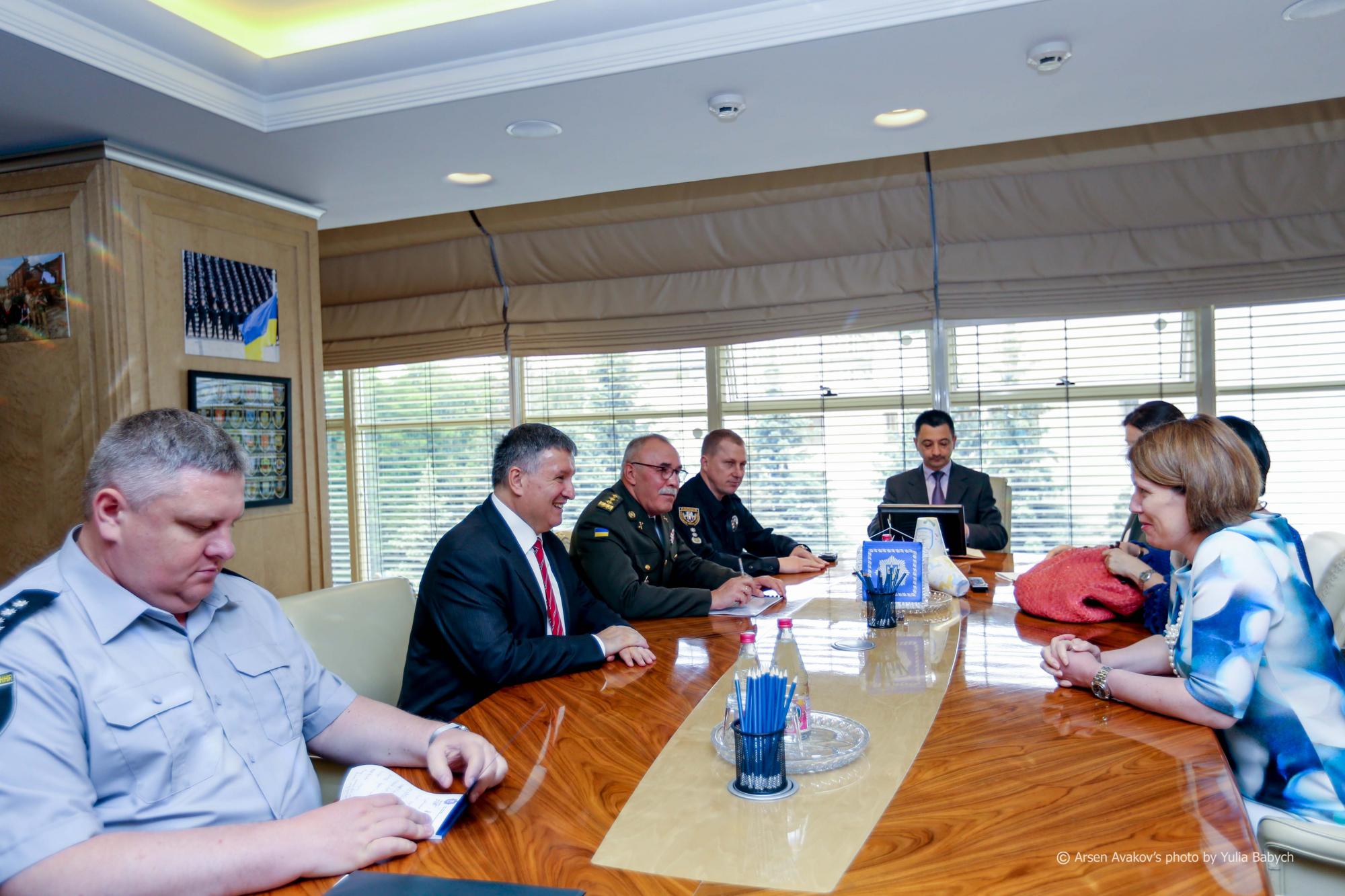 Сьогодні, 18 травня, міністр внутрішніх справ Арсен Аваков зустрівся з послами Королівства Іспанії та Великобританії в Україні – Сільвією Кортес Мартін та Джудіт Гоф.