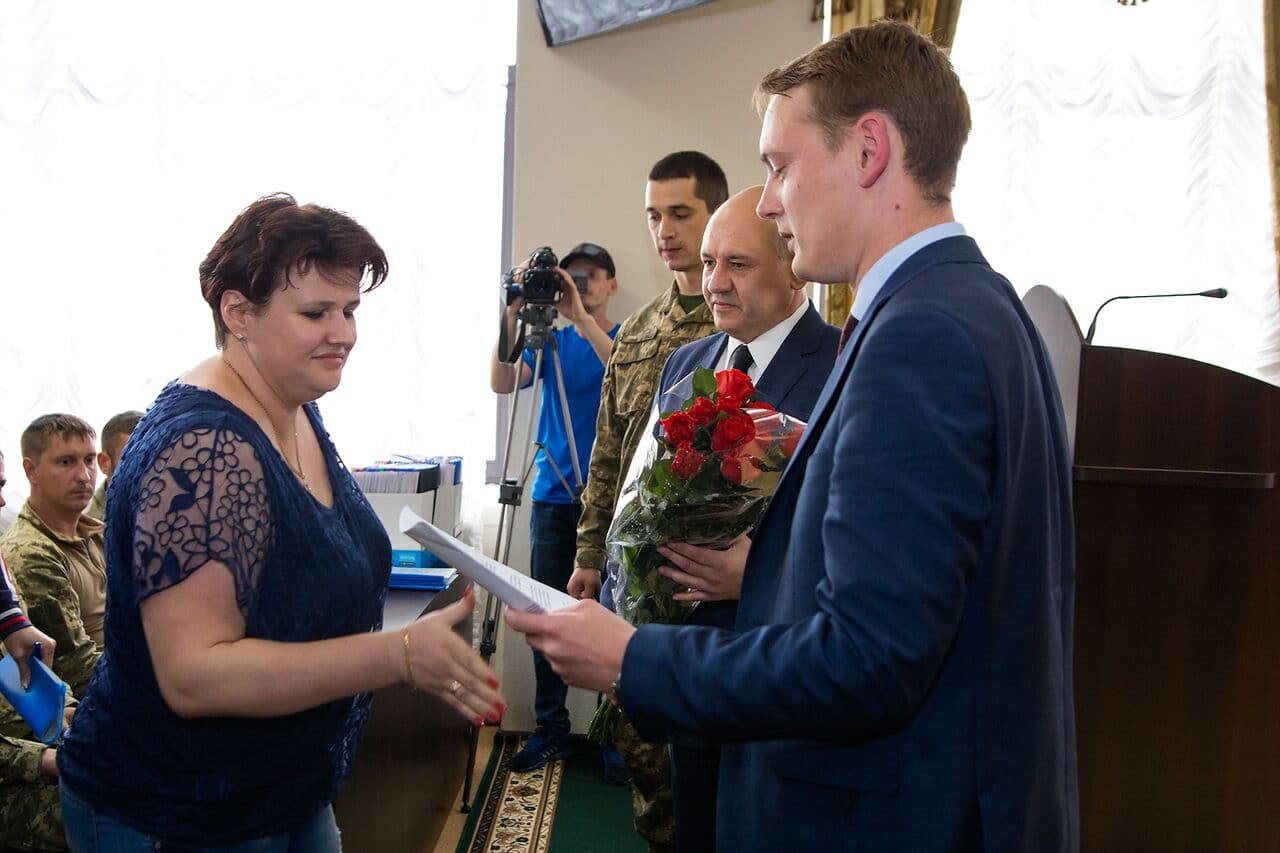 В Харькове приказы на землю получили 201 ветеран АТО, в том числе жена и мать погибшего солдата Сергея Брызгайло и жена погибшего капитана, защитника Донецкого аэропорта Ивана Литвинова. Специально для выдачи документов в Харьков приехал и.о. председателя Госгеокадастра Александр Колотилин. Это первый раз, когда глава службы принял участие в таком мероприятии не в Киеве и Киевской области, а в другом регионе. Харьковская область была выбрана потому, что по итогам 2017 года заняла второе место среди всех областей Украины.