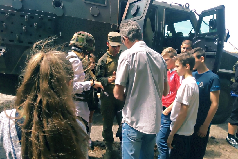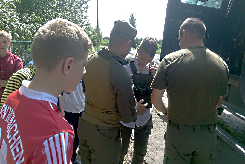 До навчального закладу військові приїхали на бронеавтомобілі «Козак», тож значна частина заняття, на прохання дітей, пройшла прямо біля шкільних воріт та була присвячена саме броньовику.