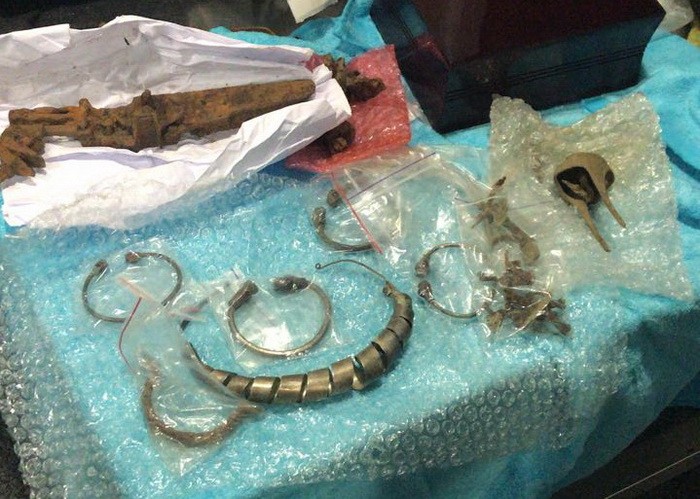 Оперативники спецслужби затримали зловмисника у пункті пропуску «Бориспіль-аеропорт» Київської митниці під час спроби незаконного вивезення антикваріату. Під час огляду речей ділка співробітники СБУ виявили приховані від митного контролю унікальні ювелірні прикраси та елементи старовинної зброї. За висновками експертів вік деяких виявлених предметів становить понад півтори тисячі років.