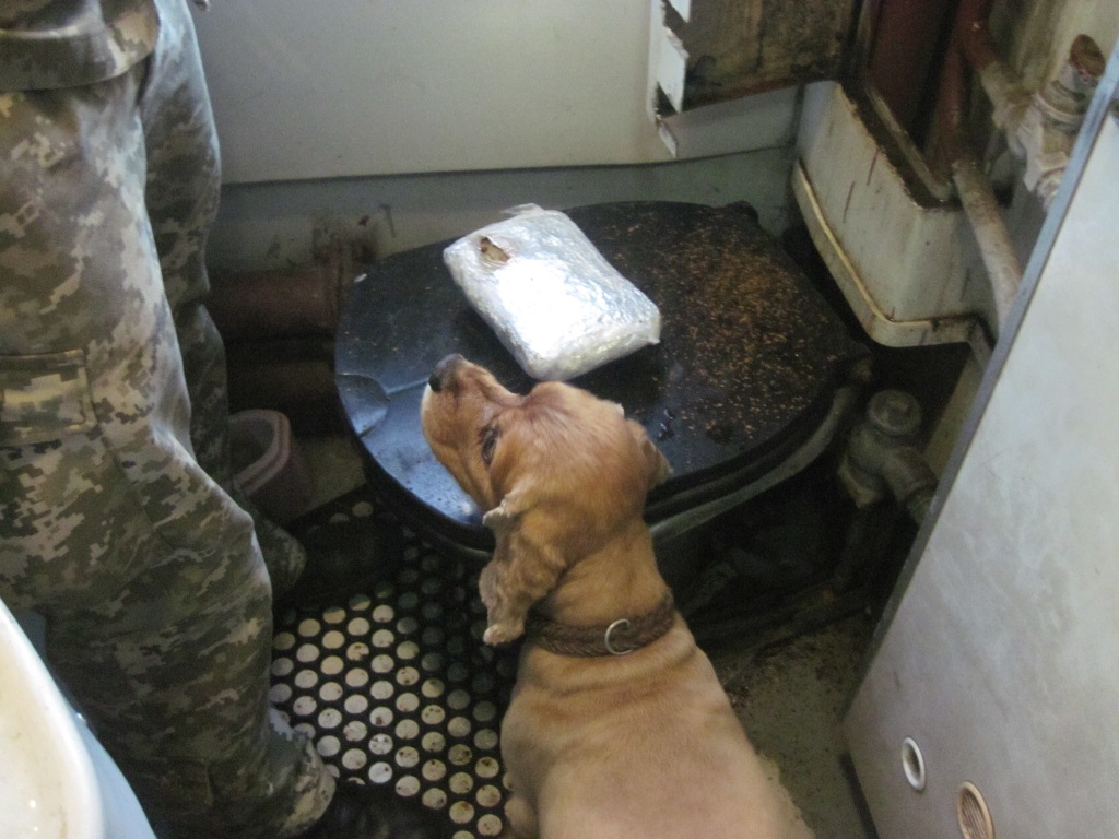 Сьогодні в пункті контролю «Конотоп» під час прикордонного оформлення потягу сполученням «Одеса-Москва» прикордонники Сумського загону знайшли прикріплений за допомогою магніту до труб опалення пакунок з речовиною, імовірно, з марихуаною. Загальна вага «зілля» склала біля 0,5 кг.
