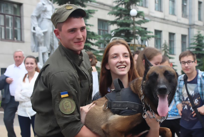 Гвардійці також розповіли студентам про завдання кінологічного підрозділу 5 Слобожанської бригади, а для випускників академії повідомили про можливість проходження служби за контрактом.