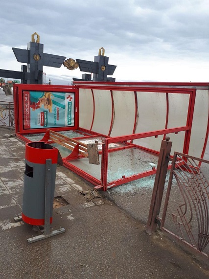 Вследствие чрезвычайного происшествия на улицах города разрушены остановки, повалены строительные заборы, светофоры, а также сорваны рекламные щиты. Также сообщается, что в некоторых районах города пропало электричество.