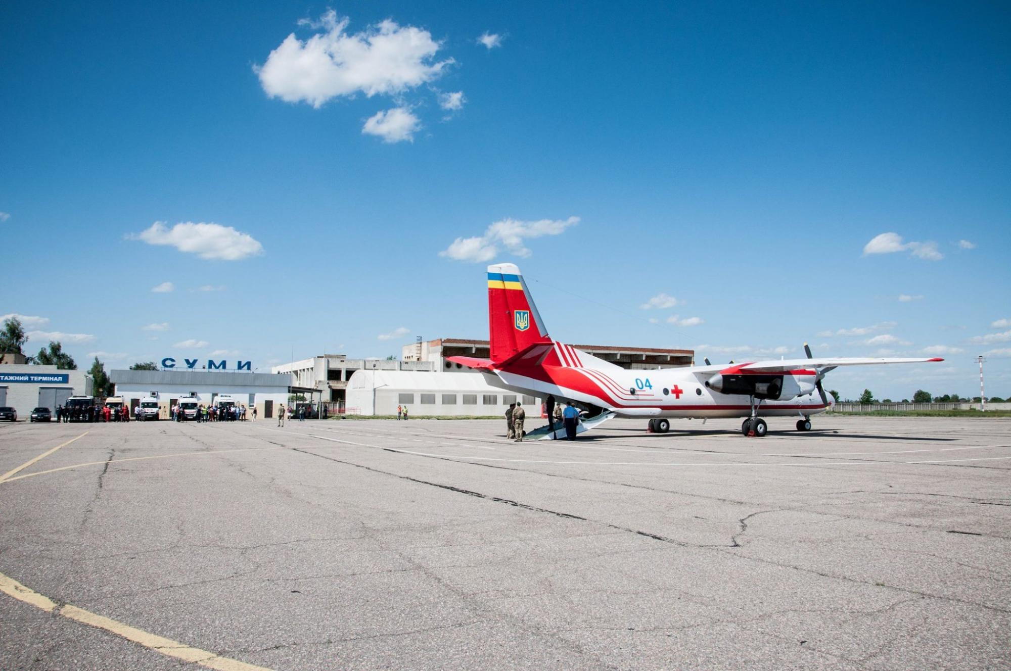 В Сумах приземлился санитарный самолет АН-26 Госслужбы по чрезвычайным ситуациям. На его борту находились трое мальчиков из состава детской футбольной команды, которая попала в ДТП на территории Республики Беларусь 13 мая.