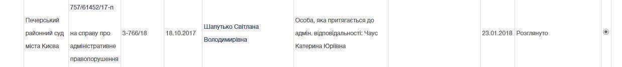 Гражданская жена президента Федерации футбола Украины Андрея Павелко – Екатерина Чаус водит автомобиль в состоянии алкогольного опьянения. Об этом свидетельствуют данные открытого портала «Судебная власть Украины» и соответствующее постановление Печерского райсуда города Киева.