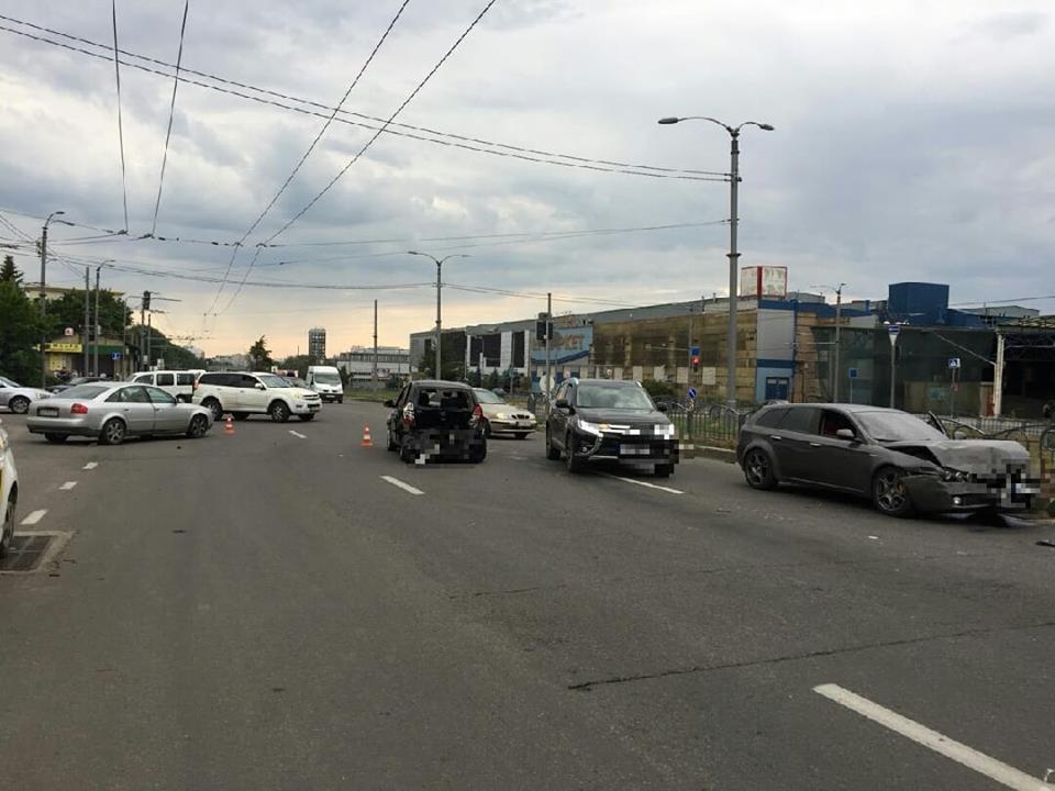 Автомобили Hyundai, Audi и Alfa Romeo столкнулись 5 июня в Харькове. По данным пресс-службы патрульной полиции, авария произошла около 17.00 на пр. Московском, 190/1.