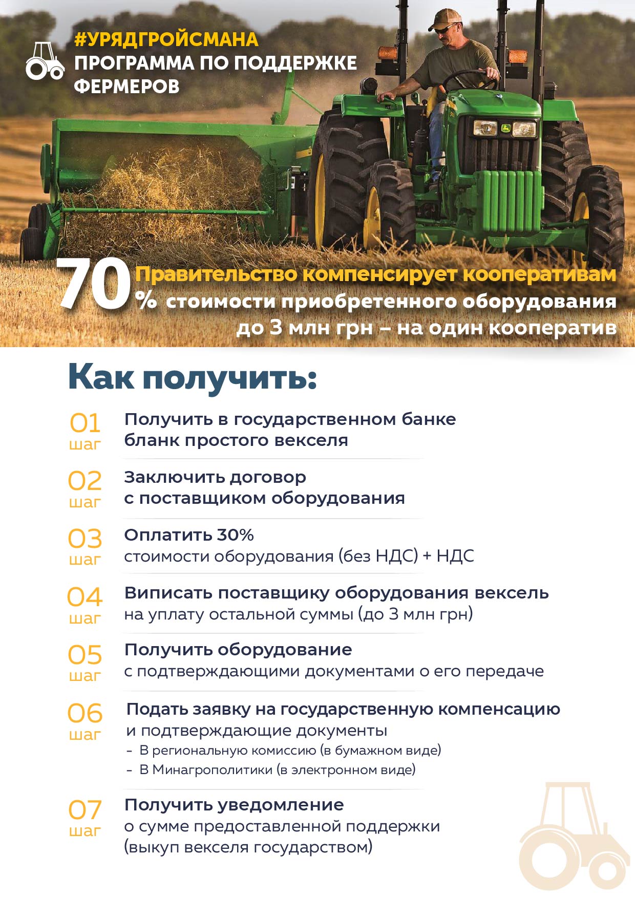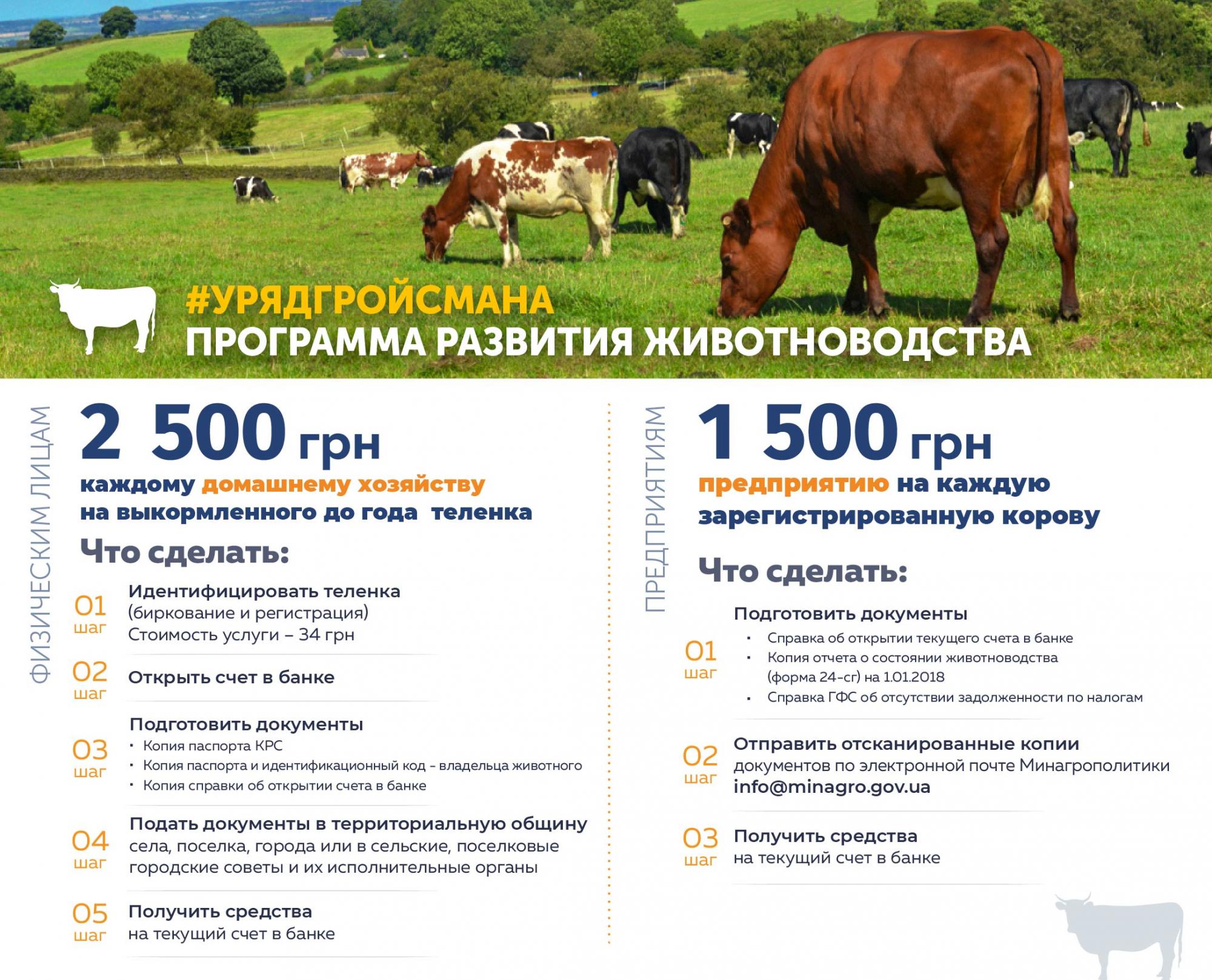 Государственная поддержка уже не зависит от объёмов производства – её могут получить и мелкие фермеры, и домашние хозяйства. В частности, с этого года частники смогут получить от государства помощь на содержание молодняка крупного рогатого скота – 2 500 грн за каждого выращенного до года телёнка. Фермерам государство готово помогать в приобретении сельскохозяйственной техники и семян, реконструкции животноводческих комплексов, выплате кредитов, привлечённых под развитие производства и т. п..