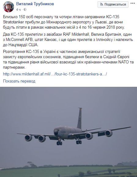 Как говорится в сообщении, развертывание KC-135 в Украине является частью американской стратегии защиты европейских союзников, повышения безопасности в Восточной Европе и повышения уровня военного взаимодействия между странами-членами NATO и партнерами.