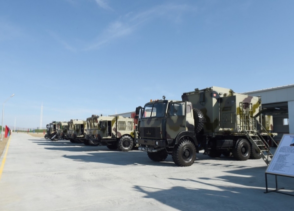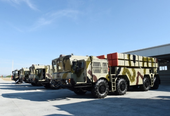 В понедельник Алиев принял участие в открытии воинской части Ракетных войск Минобороны Азербайджана. На фотографиях, опубликованных на сайте президента, видно, что в рамках открытия части Алиеву показали, в том числе и РСЗО "Полонез".