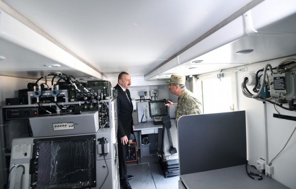 Президент Ильхам Алиев ознакомился с принятыми на вооружение азербайджанской армии реактивными системами залпового огня (РСЗО) "Полонез".