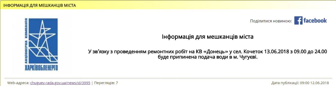 В Чугуеве завтра не будет воды 12 июня 2018 19:31 Завтра, 13 июня, в Чугуеве (Харьковская область - ред.) почти на сутки отключат воду. Об этом сообщается на официальном сайте Чугуевского горсовета.