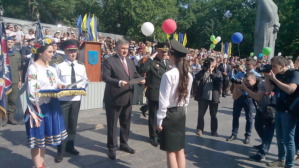 "Хочу, чтобы сегодняшний день запомнился каждому из вас. Но не тем, что вы получили диплом, а тем, что получили доверие украинского народа Национальная гвардия имеет высокий уровень доверия. Это феноменальное доверие, это - база для вас", - отметил Глава МВД Арсен Аваков - "Украина рассчитывает на вас, рассчитывает на защиту свобод, защиту от посягательств врага!"