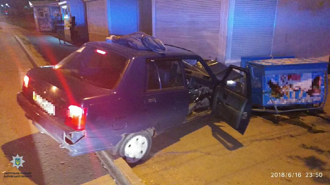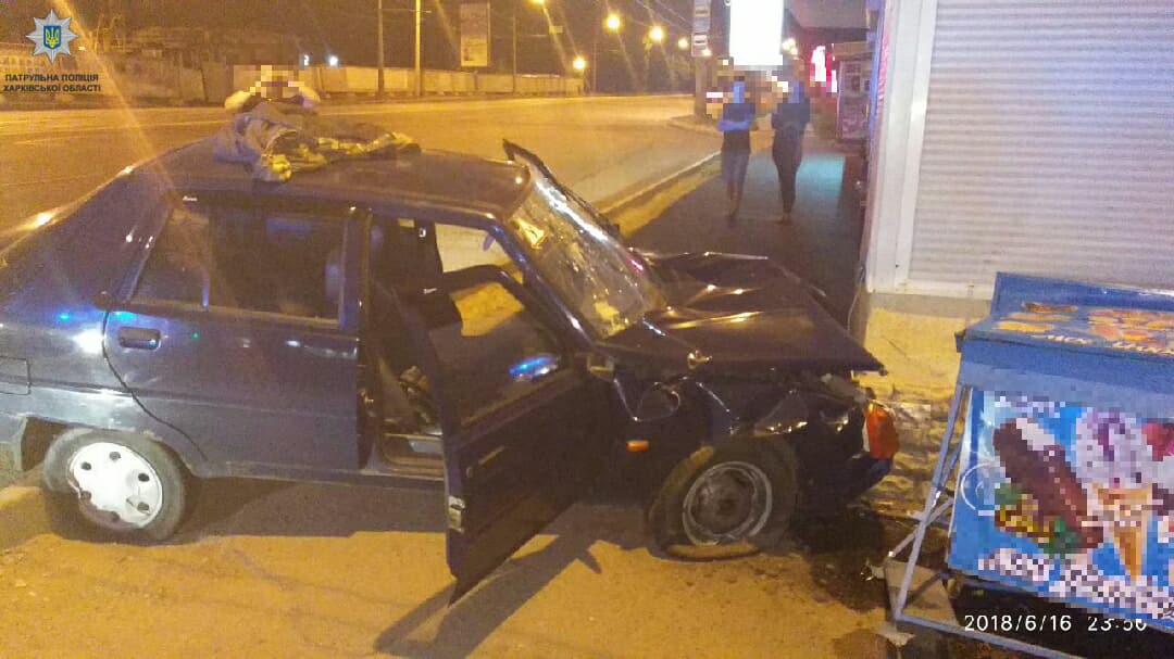 ДТП произошло 16 июня около 23:45 на проспeкте Льва Ландау, 245 в Харькове - водитель автомобиля "ЗАЗ Славута" совершил наезд на киоск.