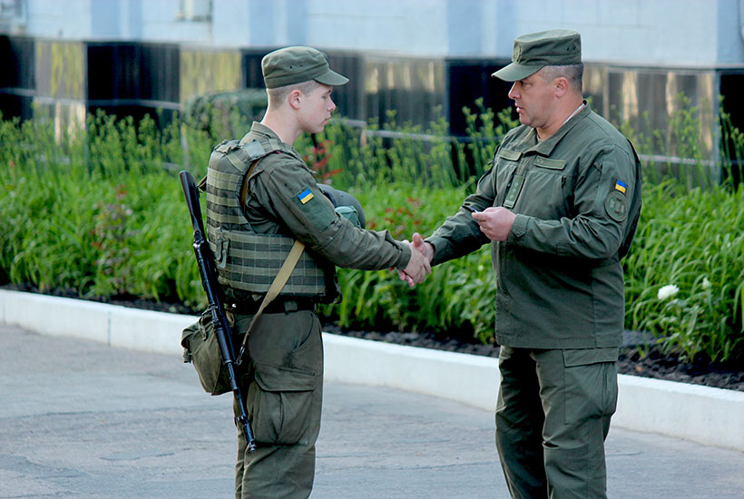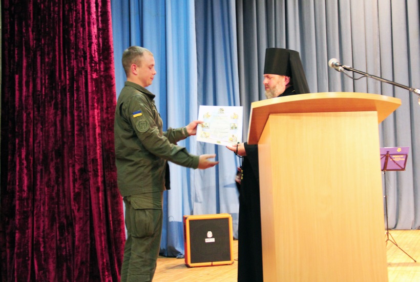 Далі військовослужбовців привітали гості свята: голова правління та координатор міжнародних програм “Школа миру” і ”Юний миротворець” Сергій Самойлов, єпископ Української Греко-Католицької Церкви Харківського екзархату Владика Василь та єпископ Харківський та Богодухівський Владика Митрофан.
