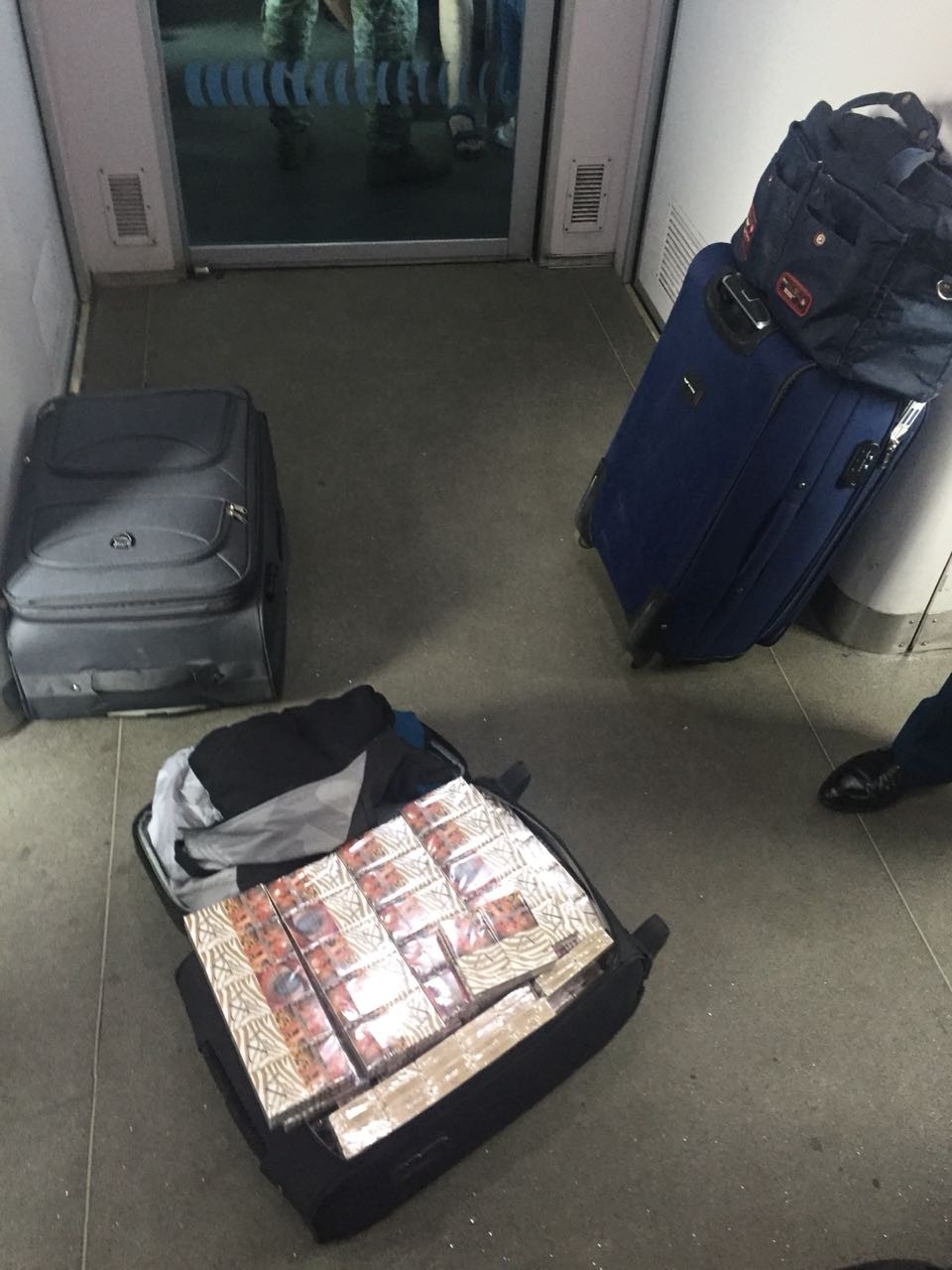 Власників валіз з сигаретами без акцизних марок виявлено не було. Всього правоохоронці нарахували 6060 пачок сигарет. Їх буде передано працівникам ДФС.