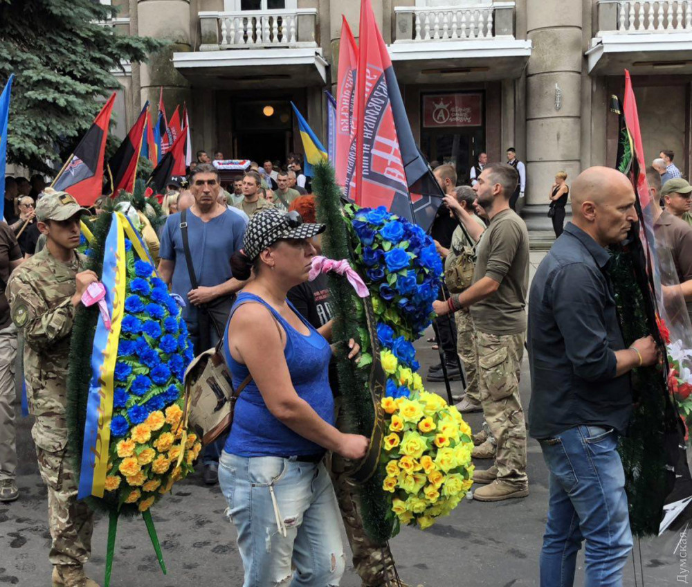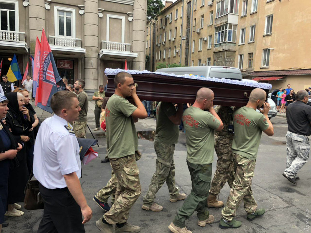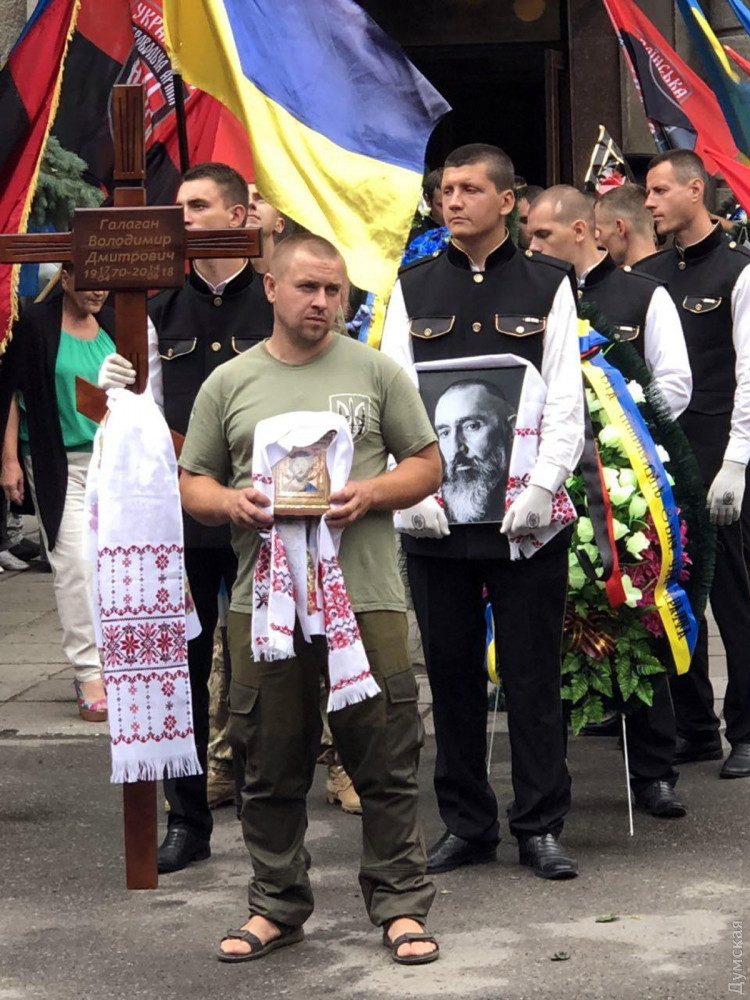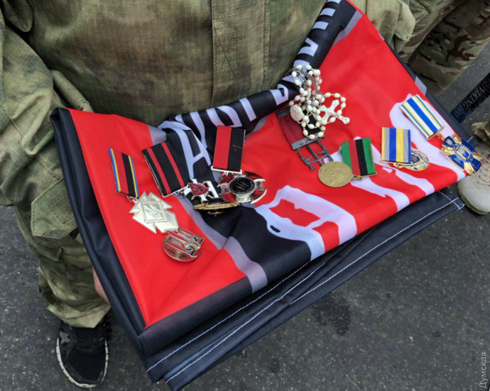 Сегодня в Доме офицеров проводили в последний путь бойца восьмого батальона Украинской добровольческой армии «Аратта», Народного героя Украины, одессита Владимира Галагана с позывным Душман.