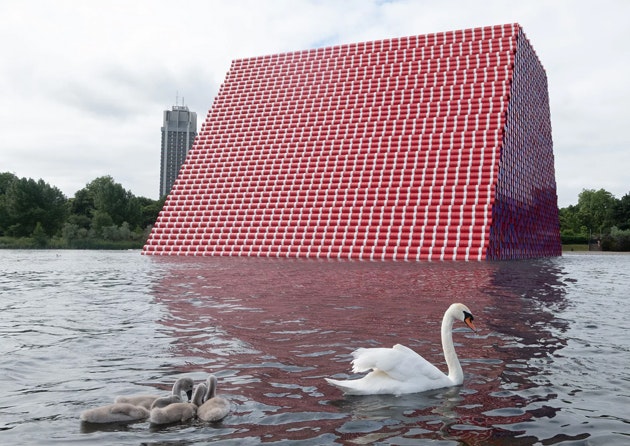 Американский художник Христо Явашев, известный под псевдонимом Христо, представил свою новую работу «Лондонская мастаба» (London Mastaba) — гигантская скульптура расположилась на озере Серпентин в Гайд-парке, пишет The Guardian. Конструкция высотой около 20 метров и весом 600 тонн собрана из 7,5 тысячи разноцветных бочек.