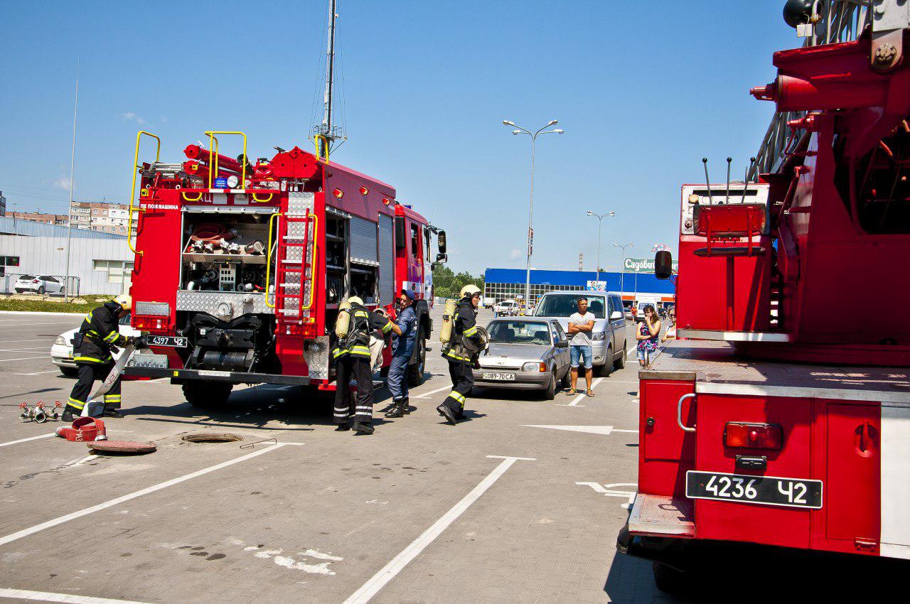20 червня у Сумах відбулися навчання на базі будівельного гіпермаркету ТОВ “Епіцентр-К". Перш за все, рятувальникам продемонстрували приміщення центру, загальна площа якого становить близько 24 тис. 200 кв. м. Фахівці Державної служби України з надзвичайних ситуацій оглянули в якому стані знаходяться шляхи евакуації, внутрішні пожежні крани та вогнегасники. Персонал закладу розповів, як діяти на випадок виникнення надзвичайної ситуації. А для перевірки їхніх знань, було зімітовано умовну пожежу в деревообробному приміщенні. Після спрацювання пожежної сигналізації проводилась евакуація відвідувачів на вулицю. До місця події прибули пожежно-рятувальні підрозділи обласного центру. Ланки газодимозахисної служби обстежили приміщення гіпермаркету, де виявили п`ятьох умовних постраждалих, яких негайно вивели на свіже повітря. Основні зусилля рятувальники зосередили на ліквідації осередку умовного загоряння та захисті суміжних приміщень. Також, відпрацьовувалось розгортання авто драбини, яка дозволяє проводити доставку особового складу та проведення гасіння з покрівлі. Сьогоднішнє відпрацювання відкрито продемонструвало жителям та гостям Сумщини, як забезпечується протипожежний захист у будівельному гіпермаркеті та наскільки обізнаний персонал щодо дій під час пожежі.