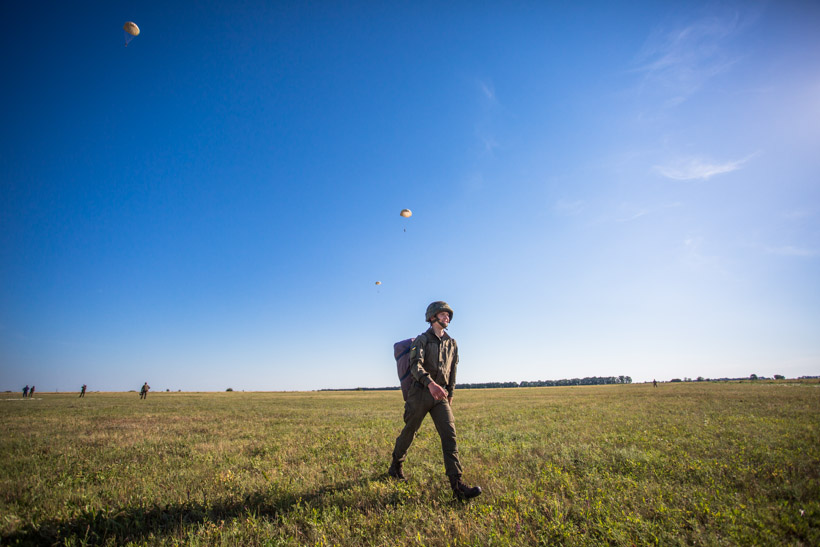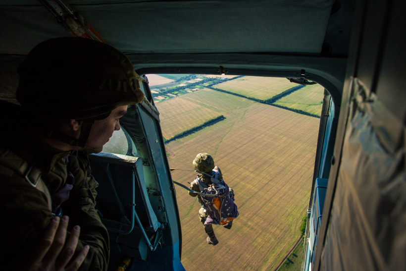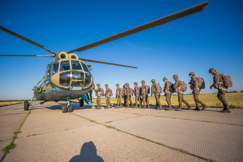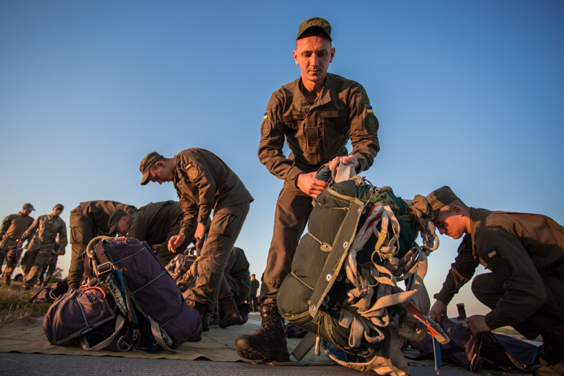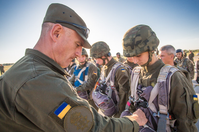 На базі гвардійської авіаційної бази в місті Олександрія проводиться підготовка та підвищення класної кваліфікації спеціалістів парашутно-десантної підготовки.