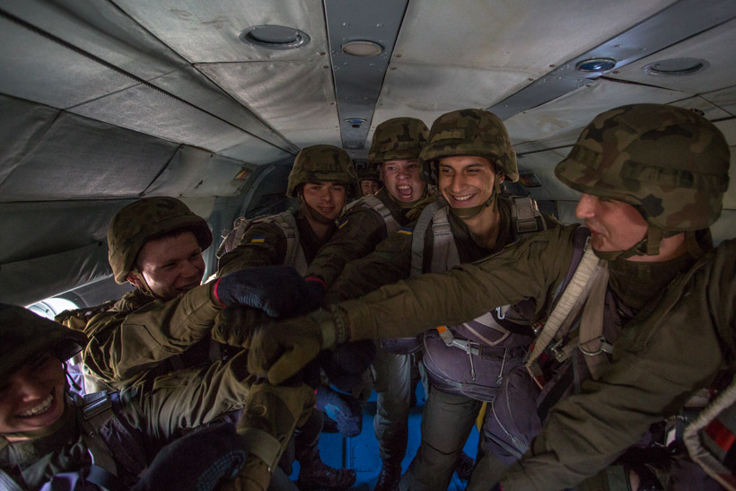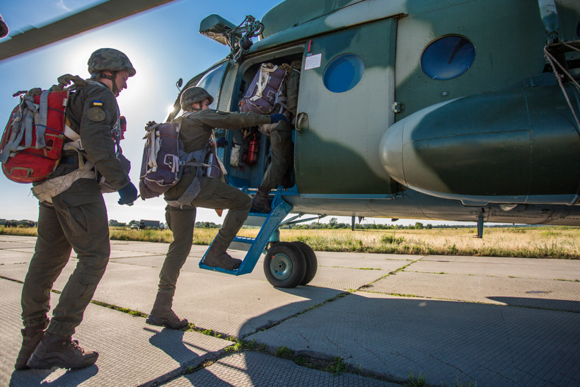 Гвардійці командно-штабного факультету Академії разом із спецпризначенцями Нацгвардії навчилися десантуватися з парашутом на вертольоті. Гвардійці Академії виконували стрибки з висоти 600 метрів.