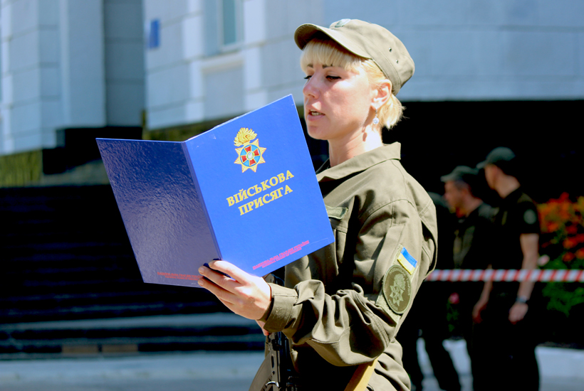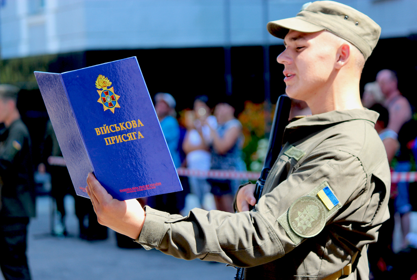 Молоді воїни хоча і з хвилюванням, але впевнено карбують кожне слово Військової присяги.