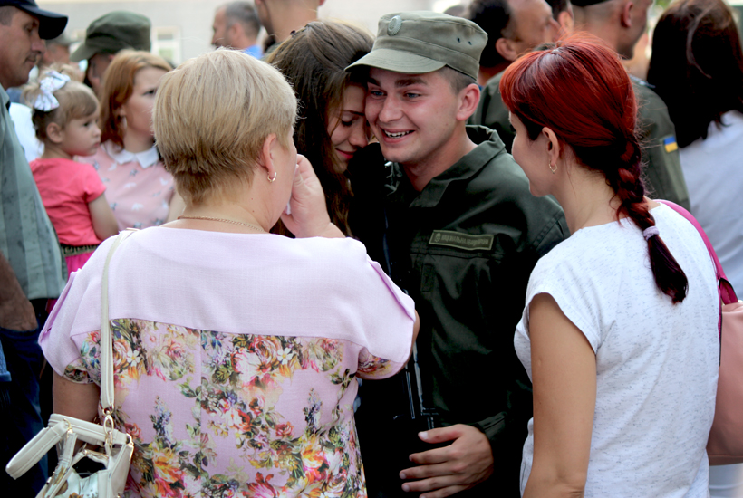«Знаходячись за 600 км від свого хлопця, я звичайно за нього хвилююся. Але він чоловік та має сам все вирішувати. Я повністю підтримую його вибір», – зізнається нам наречена Максима, Ірина Прокопенко яка приїхала з родиною юнака на присягу.