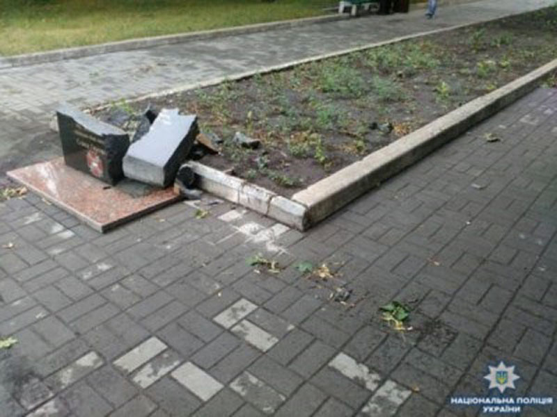 Зловмисники розбили пам’ятник Олександру Єрмакову, який загинув в 2015 році в боях під Дебальцевим. Правопорушення кваліфіковане за ч.1 ст. 296 Кримінального кодексу (хуліганство).