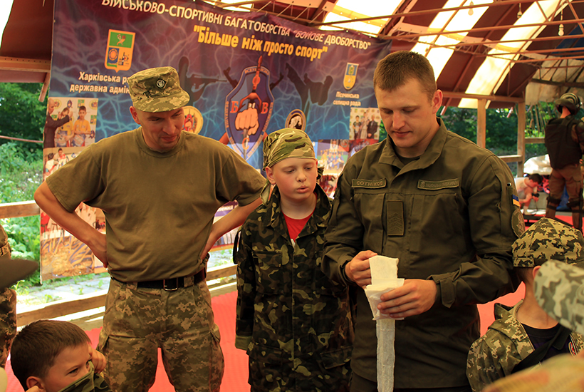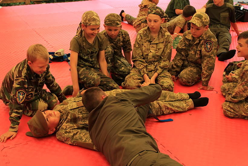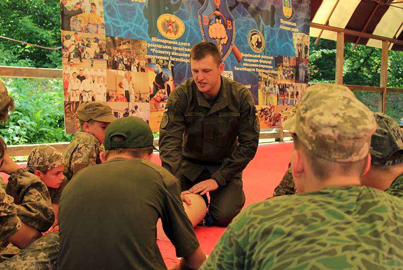 Діти у цьому тоборі – спортсмени, що займаються військовим багатоборством. Тому гвардійці підготували для них особливу програму засновану на активному методі навчання. Інструктори показали методи надання першої долікарняної медичної допомоги собі та товаришу при різних видах поранень та дали змогу потренуватись.