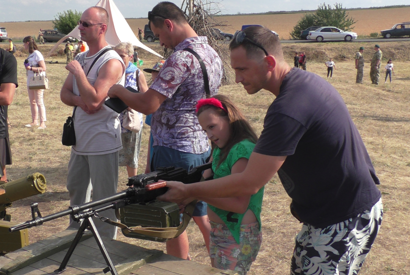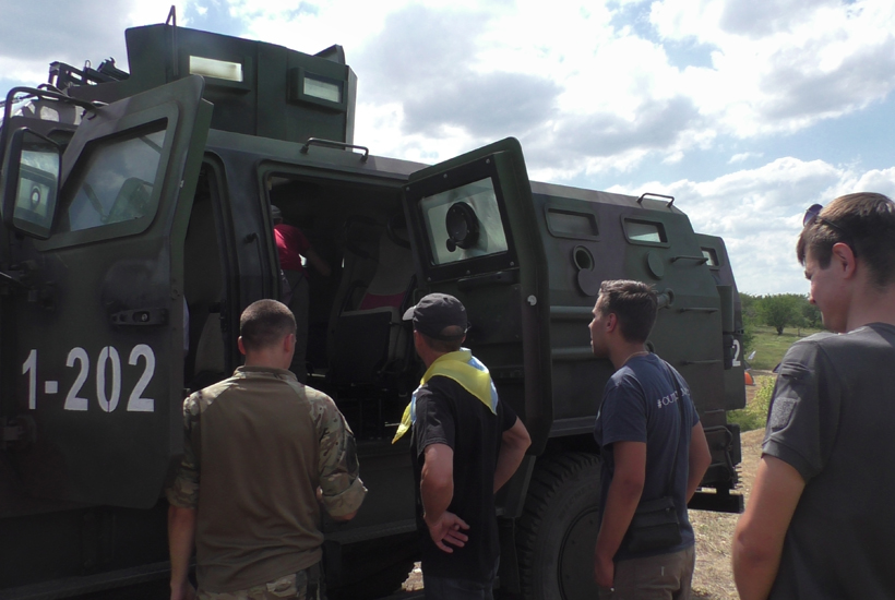 Військовослужбовці БСП «Донбас» військової частини 3035 проводили охочим екскурсію броньованим «Козаком» та розповідали про можливості снайперських комплексів, які мають на озброєнні.