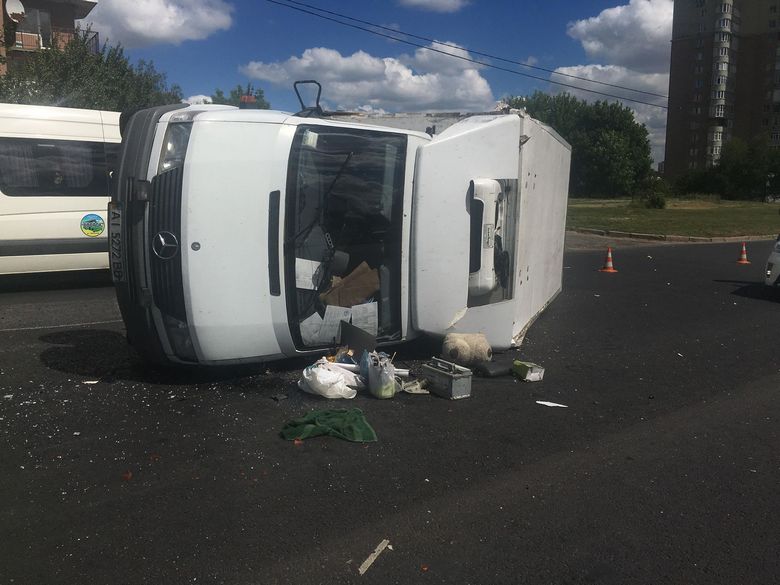 Как сообщает МГ «Объектив», после столкновения Мерседес перевернулся на бок, а бензовоз частично перекрыл проезжую часть.