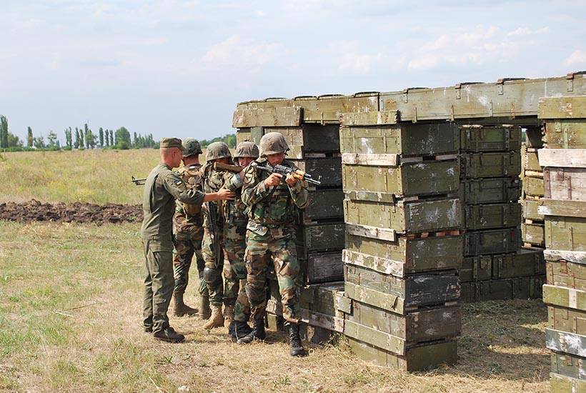 «У нашій групі 5 взводів. Окрім нашого, гвардійського, ще прикордонники, 2 взводи військових Молдови і взвод – Грузії. Ми проводимо навчання, але все проходить інтерактивно, кожен ділиться своїм досвідом. Більшість представників інших держав теж мають досвід участі в бойових діях, миротворчих операціях. Тому такі тренування корисні для всіх», – розповідає про хід занять цього тижня інструктор з тактичної медицини НГУ Віталій Гарбузенко.