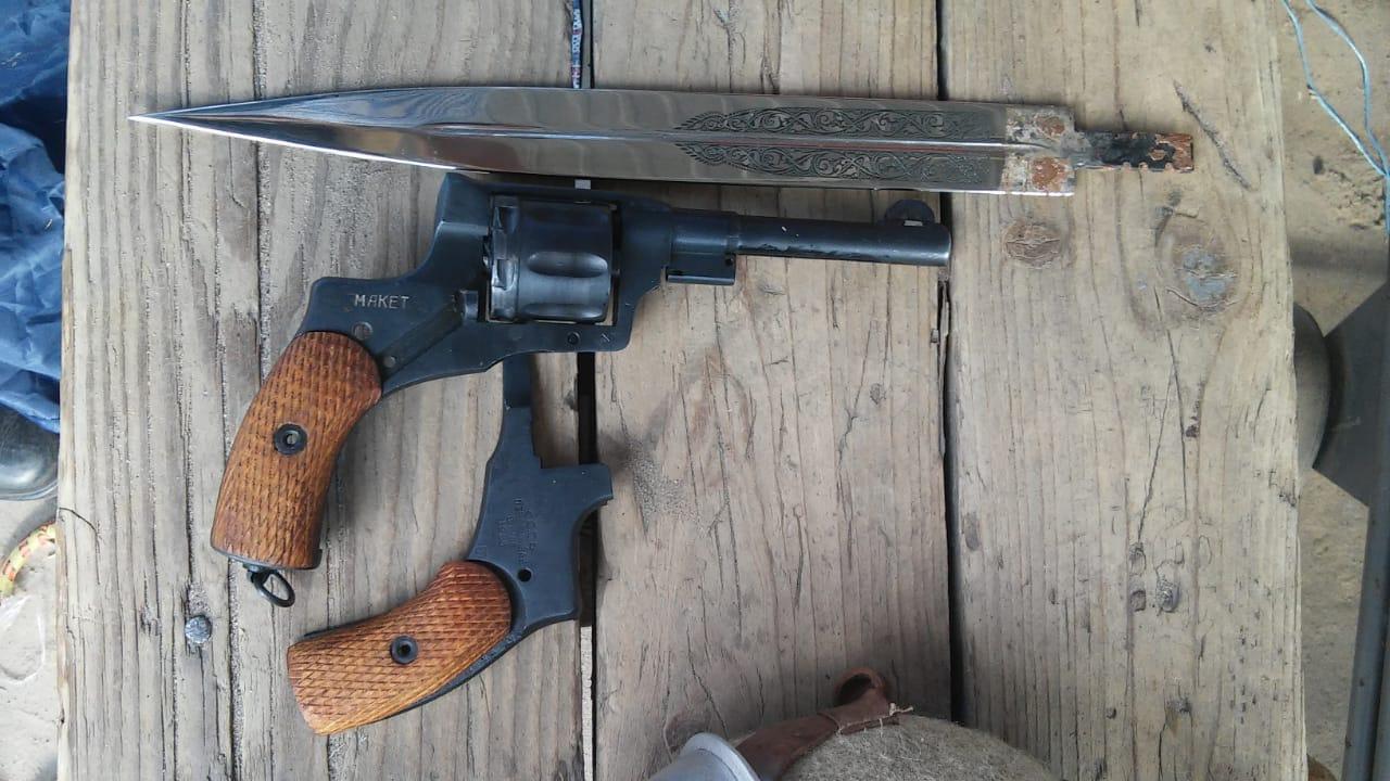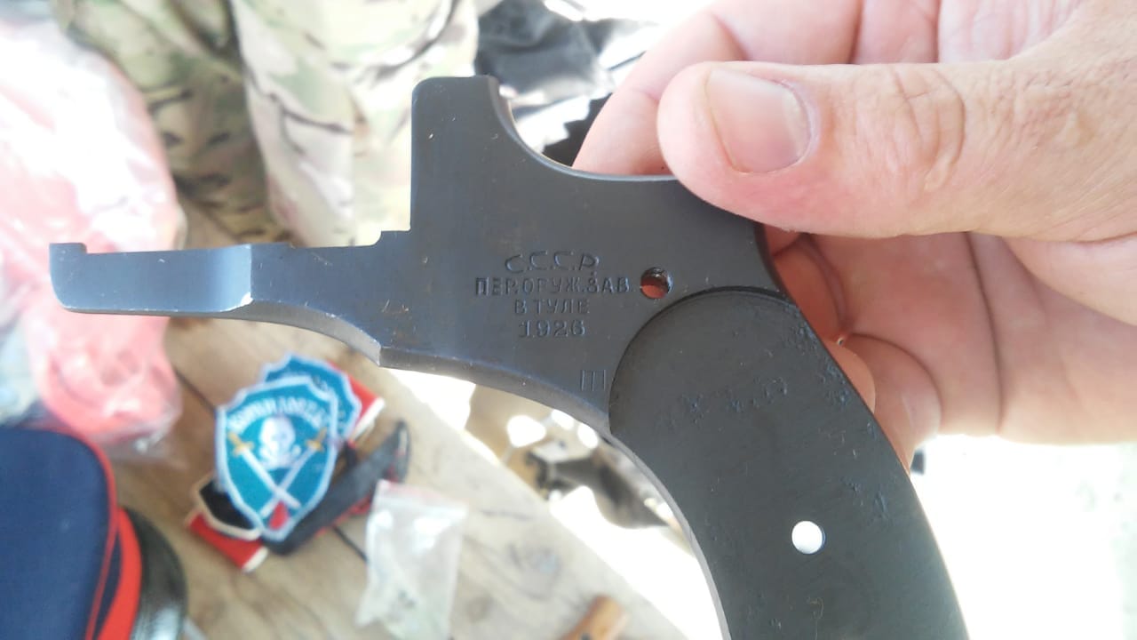"В результате углубленного осмотра среди вещей был обнаружен нарезной пистолет образца 1926 года, металлический клинок, запчасти к карабину и символика Советской армии", - сообщили в ГПСУ.