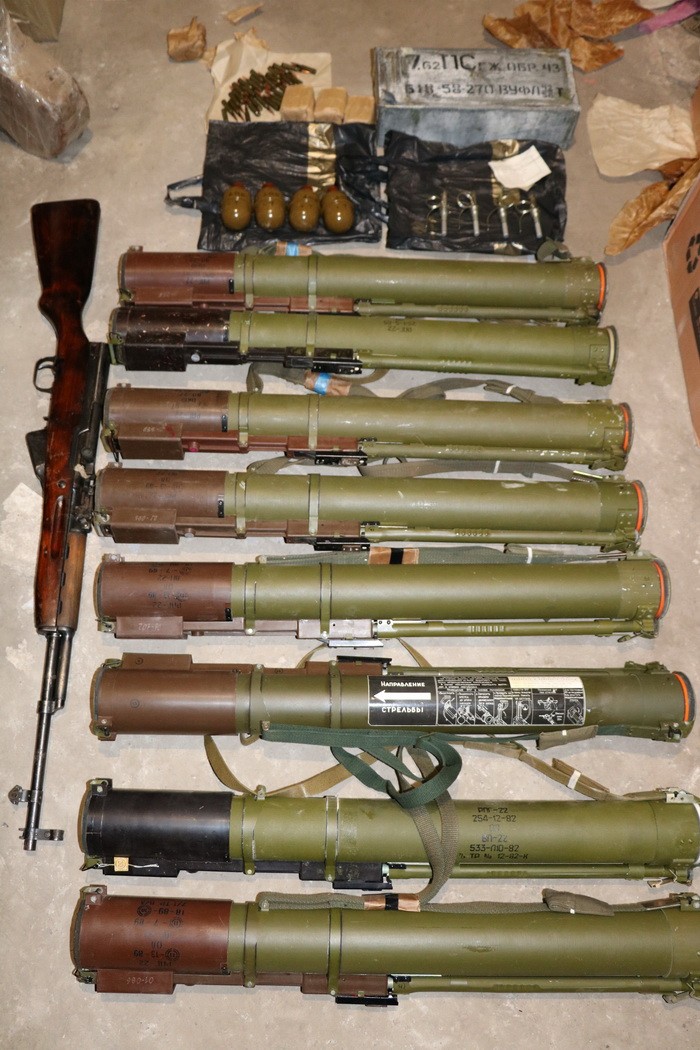 У рамках відкритого кримінального провадження співробітники СБ України задокументували низку фактів продажу членами групи засобів ураження на загальну суму понад сто тисяч гривень та вилучили гранатомети РПГ-22, карабін СКС, гранати РГД-5 та Ф-1, набої до автомату Калашникова.