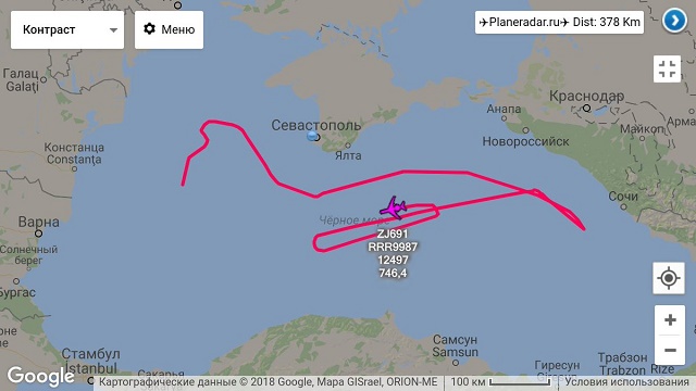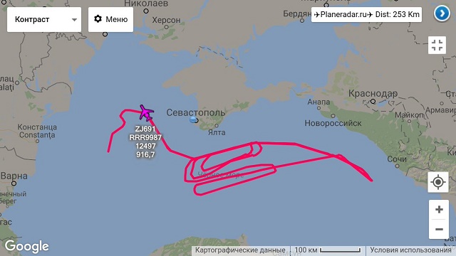 По маршруту самолета видно, что он пролетел над акваторией Черного моря, вдоль побережья России и Крыма от Сочи до Севастополя. Как сообщается, полет производился приблизительно с 13:00 до 16:00.
