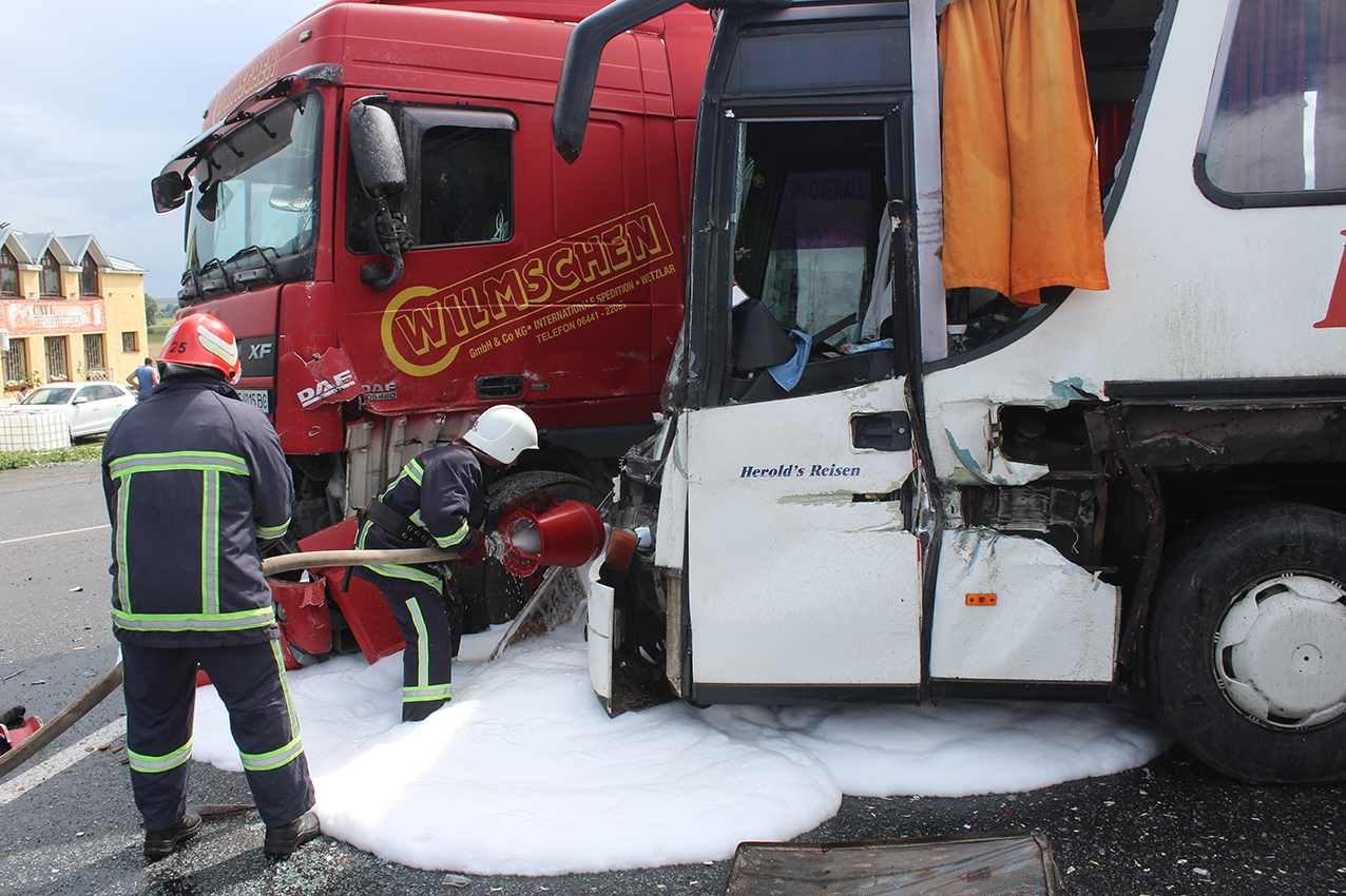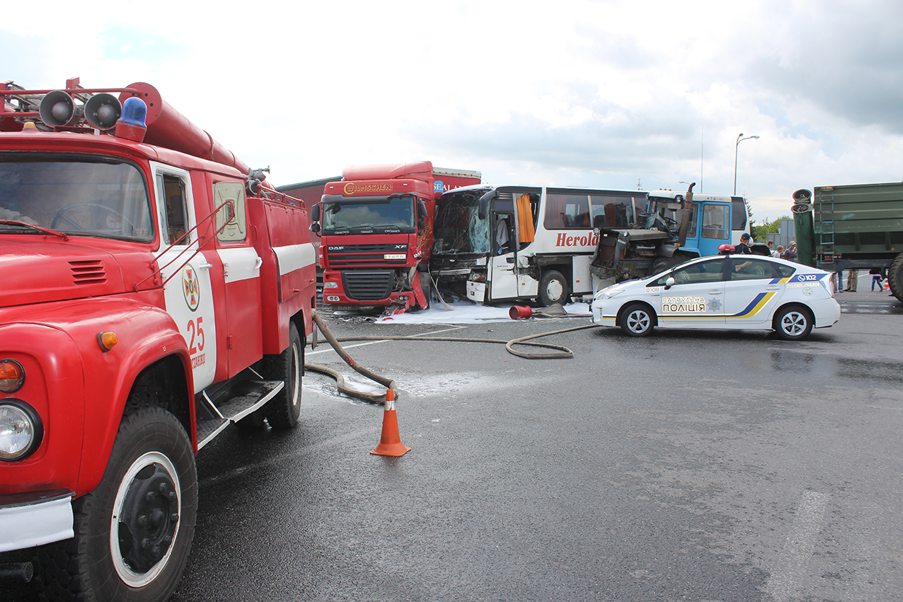 14 липня о 15:19 на пункт зв’язку рятувальників у Хмельницькому надійшло повідомлення від правоохоронців, що на перехресті Вінницького шосе і об’їзної дороги на Чернівці сталася дорожньо-транспортна пригода за участі трактора ХТЗ-200, рейсового автобуса SETRA та вантажного автомобіля DAF.