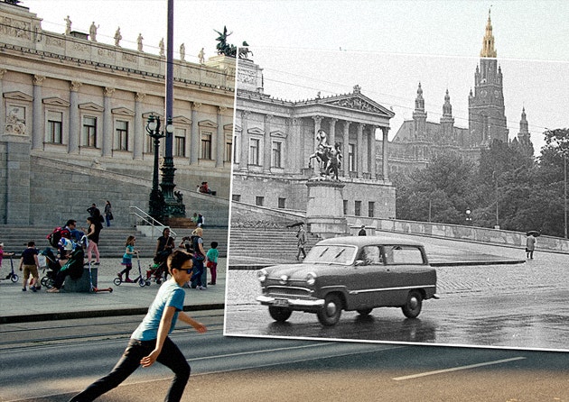 В течение нескольких лет венгерский фотограф Золтан Кереньи ведет фейсбук-страницу Window to the Past («Окно в прошлое»), на которой выкладывает фотоколлажи из своего проекта о Будапеште. Каждая работа — совмещение старых и новых фотографий города, снятых с одного и того же ракурса. К этому моменту серия уже насчитывает несколько сотен коллажей.