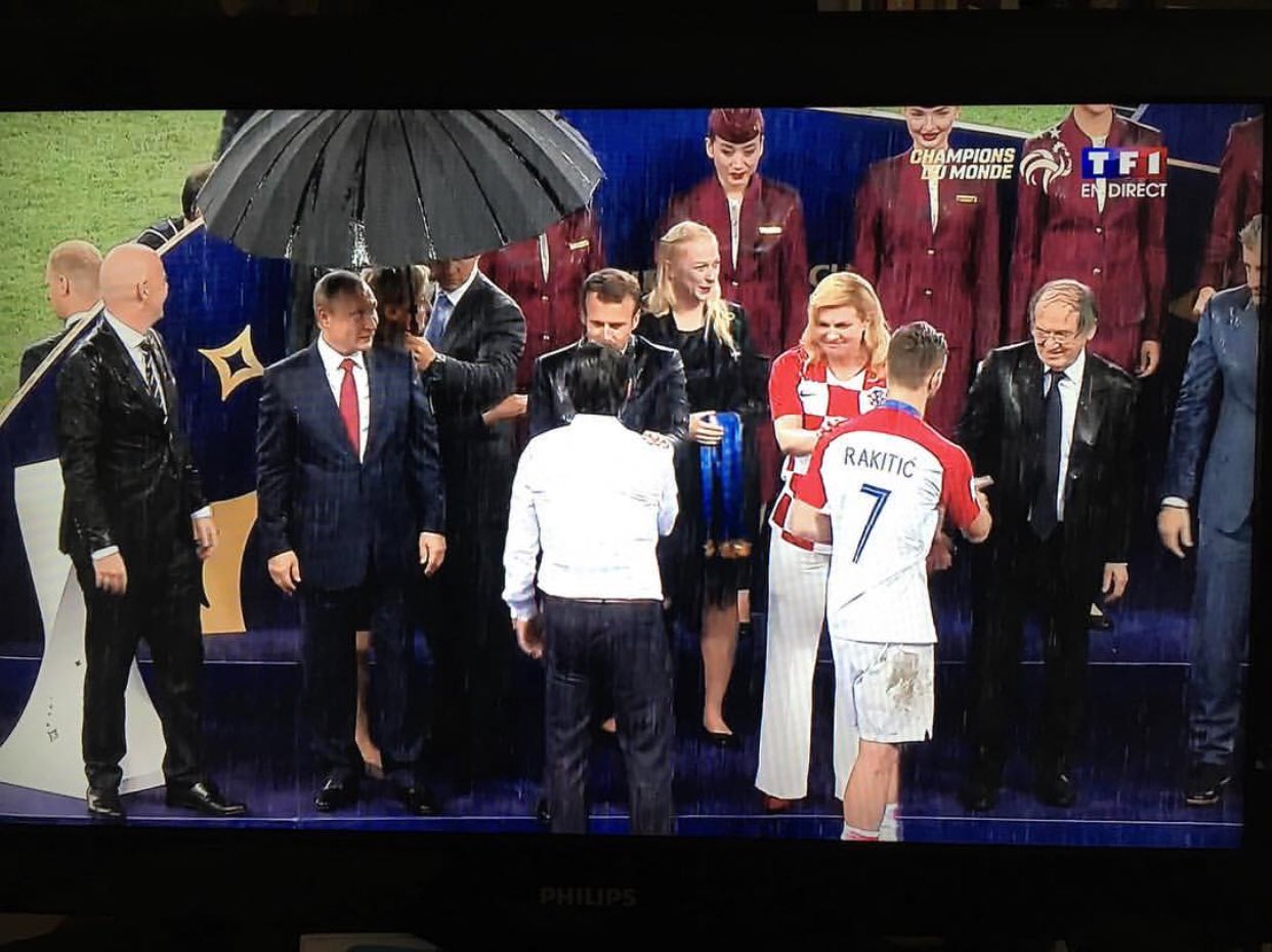 Президент России, над которым раболепная охрана открыла зонт и президенты Франции и Хорватии, которые вымокли под проливным дождем - это, пожалуй, самая яркая картинка чемпионата мира по футболу в России. Голы, пенальти, радость победителей - все это забудется уже через несколько дней, как забываются любые футбольные события. В сознании фанатов их вытеснят новые матчи, новые голы, новые герои. Для того и придуман футбол, эта безупречная машина генерации зрелищ и зарабатывания больших денег на маленьком мяче и первобытных инстинктах человечества.