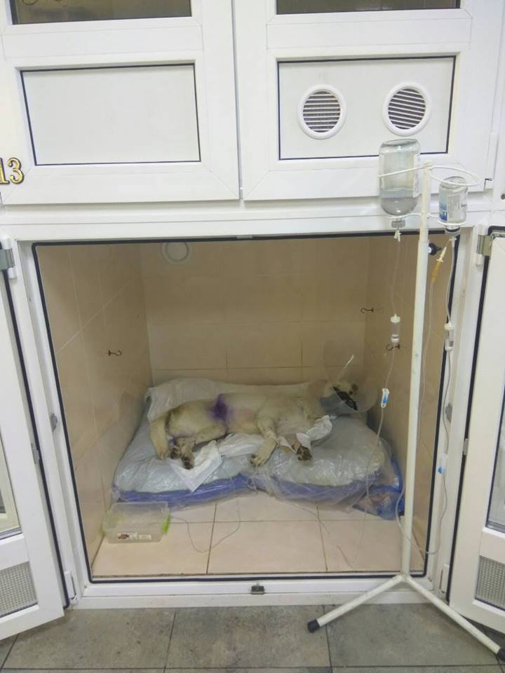 Зоозащитники сообщили, что вчера собаку прооперировали, и операцию пострадавший пес пережил хорошо.