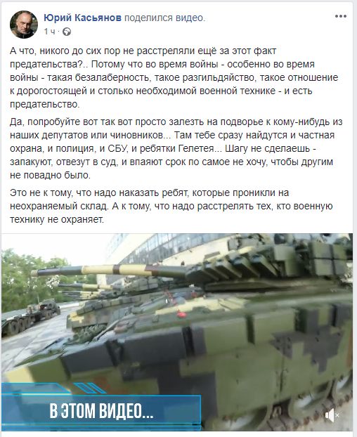 Напомним, в Харькове двое местных жителей беспрепятственно проникли на территорию танкового склада, на котором находились сотни списанных и десяток новых танков.