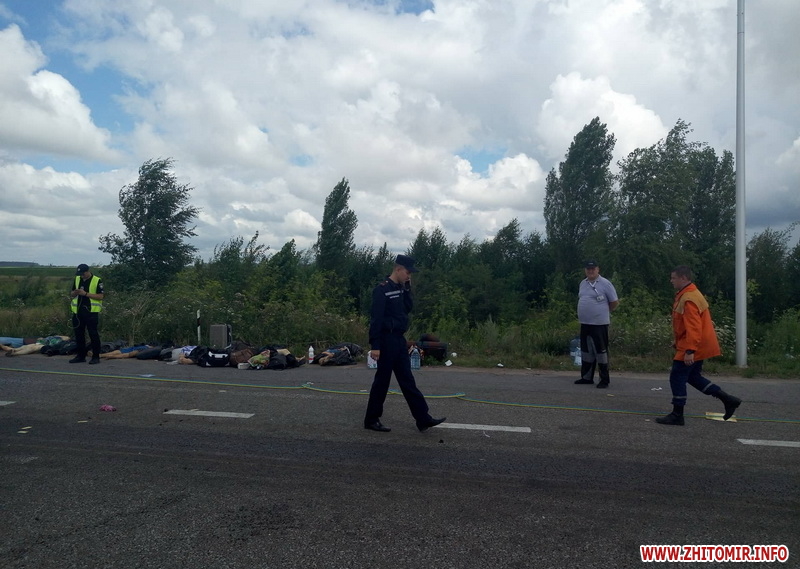 На місці події продовжують працювати слідчо-оперативні групи Головного управління Нацполіції в області та Житомирського відділення поліції, патрульні, рятувальники та медики.