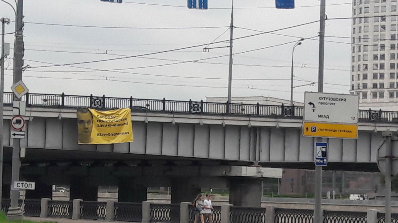 Активисты Москвы и Петербурга продолжают вывешивать баннеры в поддержку Сенцова, пишут Грани.