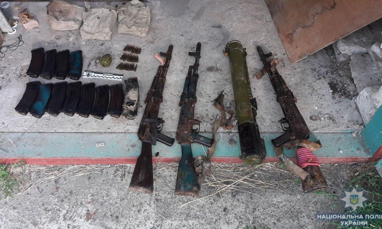 Провівши необхідну роботу оперативники зясували місце знаходження небезпечних предметів та вилучили: гранату Ф-1 та запал до неї, три автомати Калашникова, РПГ-22 та 420 набоїв калібром 5,45 мм.