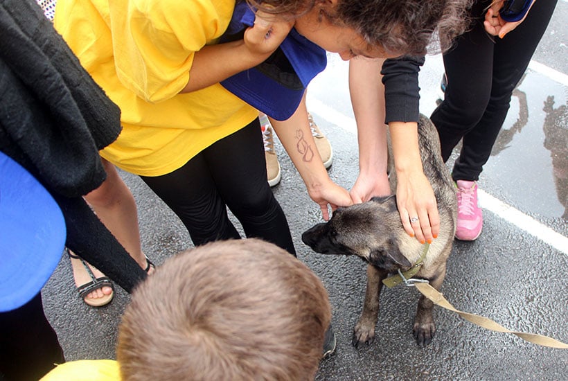 Наприкінці екскурсії школярі познайомилися з майбутньою службовою собакою - бельгійською вівчаркою Тором. Разом з кінологом він показав, чому навчився за 3 місяці тренувань.