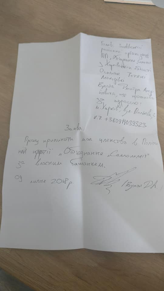 1. Я написал заявление о выходе из Политической партии "Об'єднання "Самопоміч".