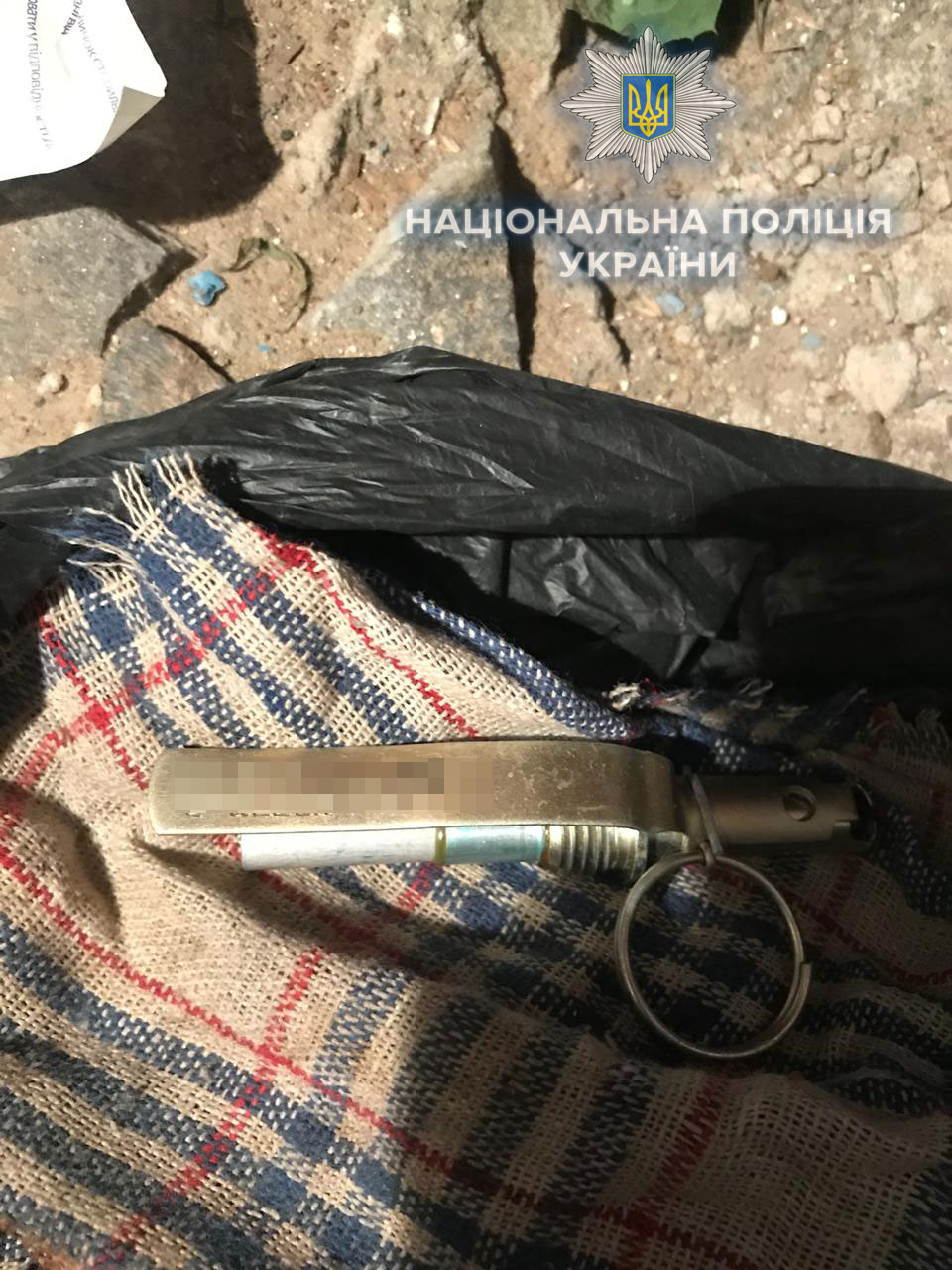Отмечается, что во время обыска у одного из исполнителей в подсобном помещении дачного дома в Житомирской области полицейские изъяли самодельное взрывное устройство, запал к гранате, пистолет и патроны.
