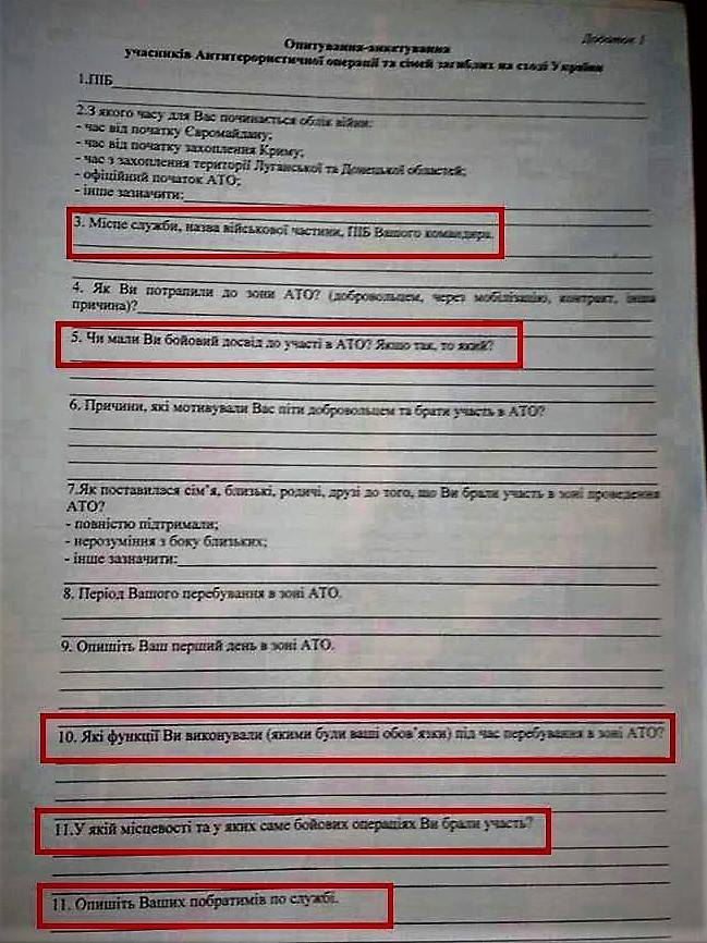 Обласний архів в Луганській ОДА проводить анкетування ветеранів АТО. Питання в анкеті: