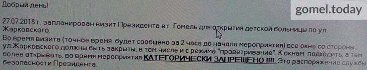 Напомним, тогда «Сильные новости», основываясь на информации читателей, проживающих на центральных улицах города, сообщили, что людям начали приходить письменные предупреждения о том, как надо вести себя в день приезда высокого гостя, то бишь, 27-го июля в пятницу. Строго-настрого приписывалось не открывать окна, да и вообще не подходить к ним.