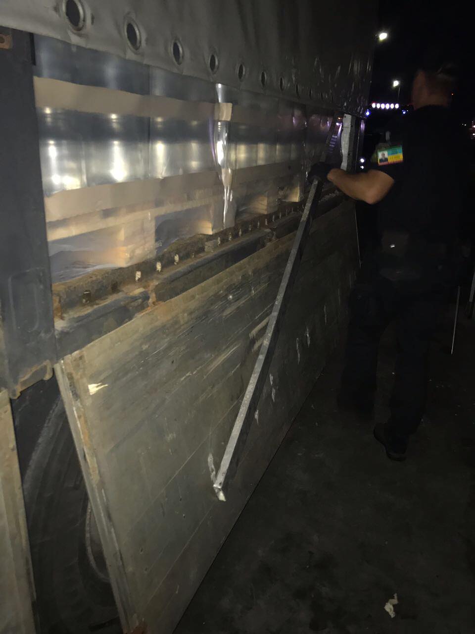 На виїзд з України смугою руху «червоний коридор» автомобіль «Рено» прибув з вантажем скляних банок. Під час перевірки транспортного засобу прикордонники спільно з працівниками ДФС виявили приховані тютюнові вироби в бокових стійках причепу.