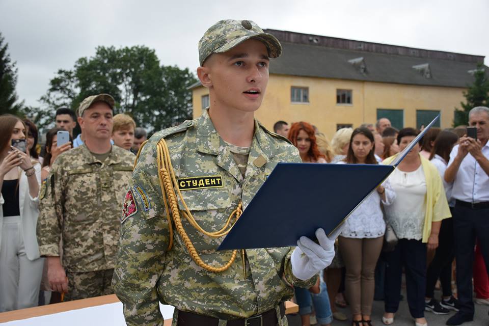 На плацу 44-ї окремої артилерійської бригади оперативного командування «Захід» з самого ранку людно. Зібрались родичі, запрошені, представники військових, щоб привітати майбутніх офіцерів запасу, які присягнуть на вірність українському народові. Урочиста церемонія розпочалася під команду «Струнко», під супровід військового оркестру вийшли понад пів сотні випускників. Відбувся винос прапора та виконання державного гімну. Хвилиною мовчання згадали загиблих військовослужбовців, поклали квіти й лампадки до стели загиблим артилеристам. Під час урочистої частини на трибуні присутні представники Національної академії сухопутних військ України імені Петра Сагайдачного, командування військової частини А3215, делегація Тернопільського Національного економічного університету, Центру підготовки офіцерів запасу цього ВНЗ, гості та запрошені. Командир артилеристів - полковник Сергій Баранов привітав випускників зі знаменним в житті днем та подякував, що під час вибору професії зосередились на спеціальності захисників Вітчизни. Переконаний, що слова присяги гартуватимуть і зміцнюватимуть Ваш дух, надаватимуть наснаги та віри у перемогу - зазначив Сергій Баранов під час звернення до випускників. Також комбриг побажав молодим офіцерам запасу, щоб кожен реалізував себе у житті не залежно від обставин, а якщо траплятимуться труднощі - йти тільки вперед. Курсанти приймали військову присягу в оточенні рідних, під пильним оком фотооб’єктивів, за підтримки військовослужбовців артилерійської бригади. Згодом вони пройшли урочистим маршем, продемонструвавши чіткий стройовий крок та військовий вишкіл. З відчуттям щему у серці й сльозами на очах випускники вітали матерів, дарували квіти, танцювали вальс.Під час цього дійства вирували емоції, від найменшого до найстаршого щиро аплодували усім, хто присягнув на вірність українському народові.