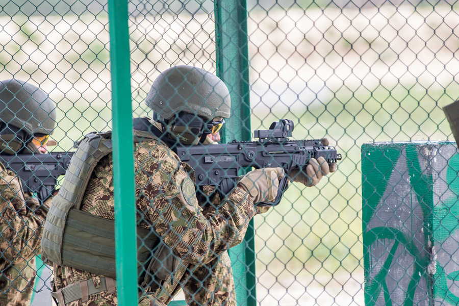 У ході візиту іноземним колегам також продемонстрували бойові стрільби та майстерність підрозділу спеціального призначення НГУ. Після практичних дій підрозділів Нацгвардії делегація оглянула військове стрільбище, танкове та тактичне поле, де проходять навчальні стрільби гвардії. Начальник Міжнародного центру полковник Геннадій Пузанов розповів про можливості використання військового стрільбища.